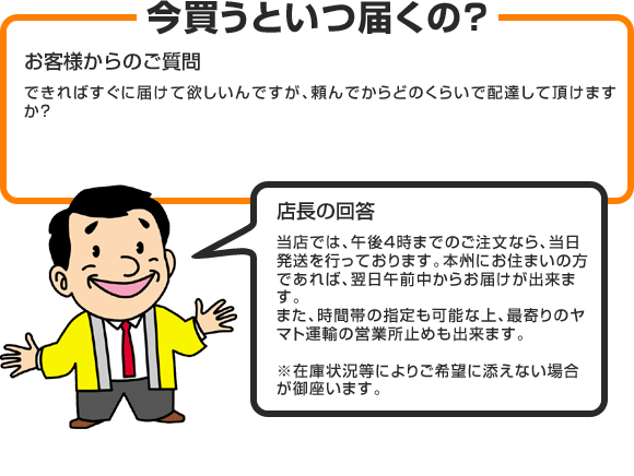 尚、在庫状況・お住まい地域により即日お届けが出来ない場合もございますので、予めご了承下さい。